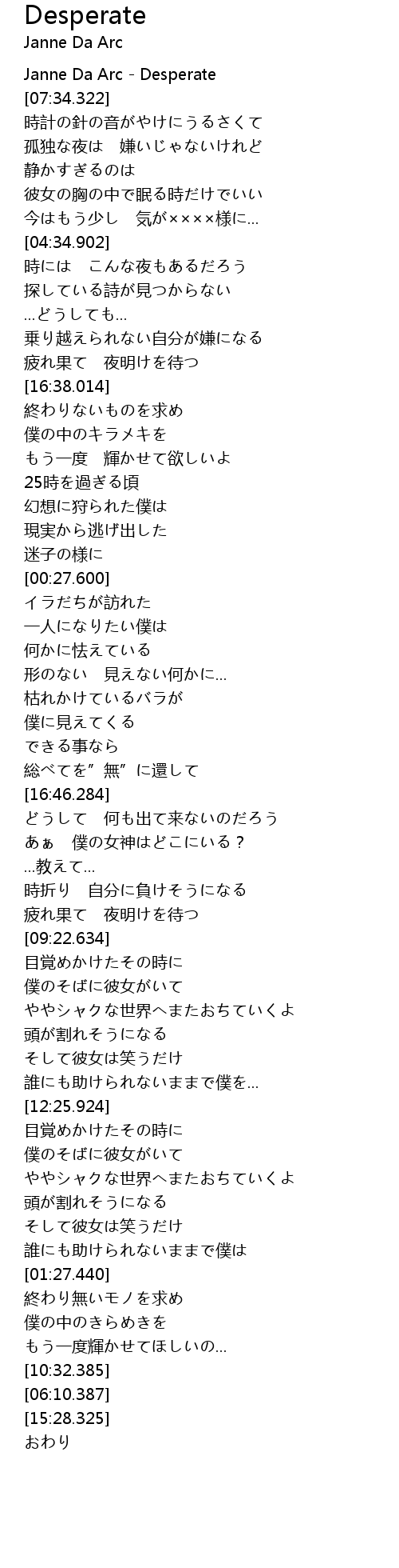 | [00:07.627] | 疲れ果て 夜明けを待つ |