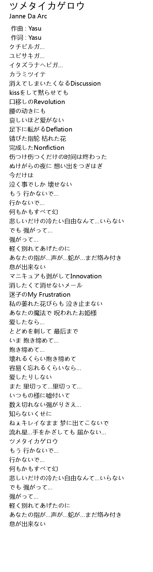 | [03:29.58] | あなたの指が…声が…蛇が…まだ络み付き |