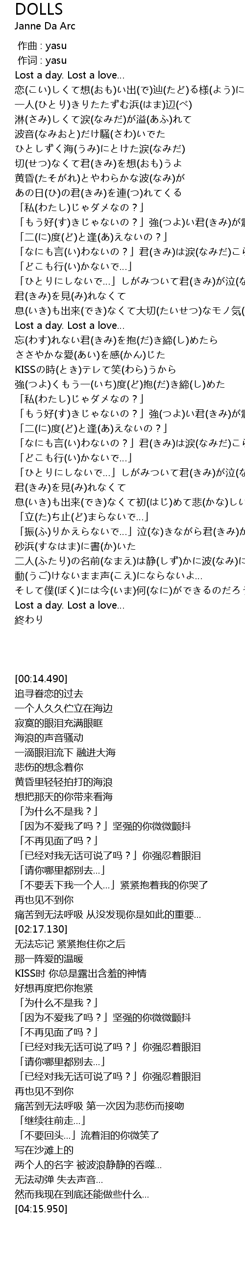 | [03:52.460] | 二人(ふたり)の名前(なまえ)は静(しず)かに波(なみ)にさらわれた… |