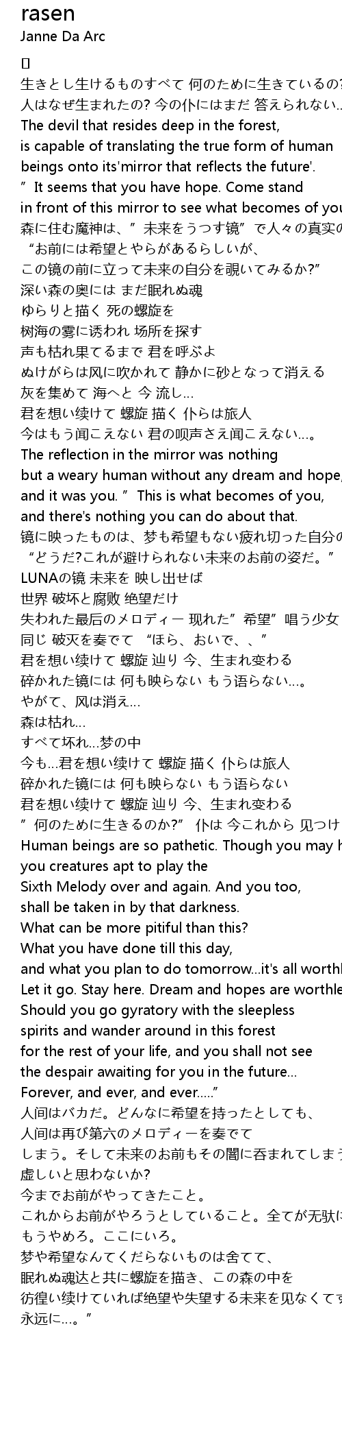 | 碎かれた镜には 何も映らない もう语らない | |