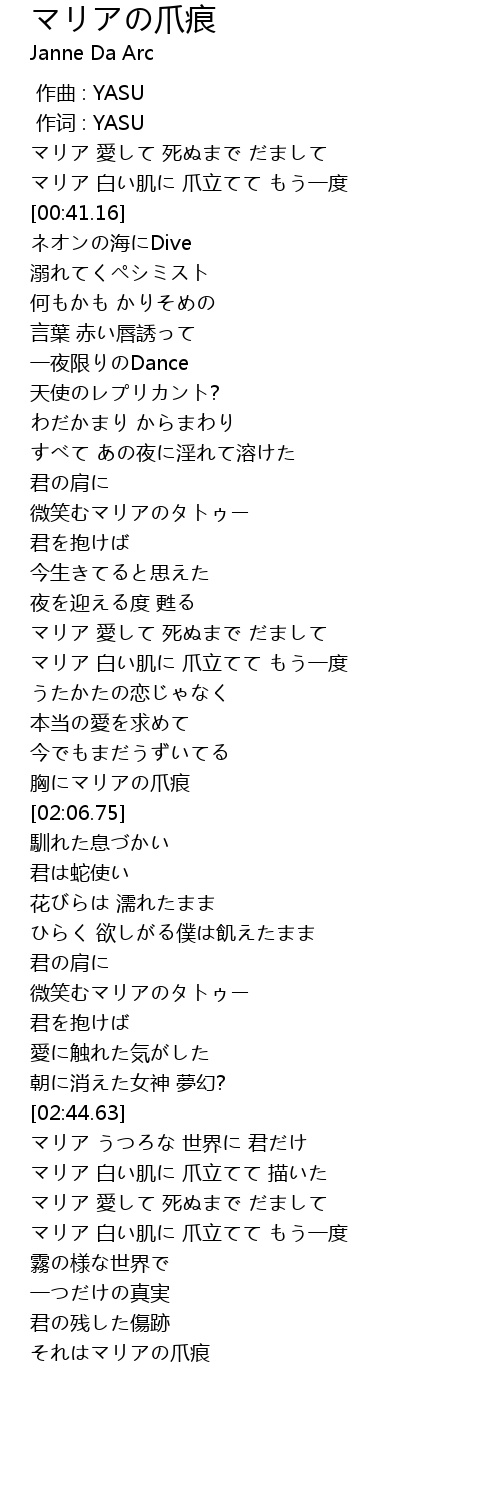 | [03:43.89] | マリア 白い肌に 爪立てて もう一度 |