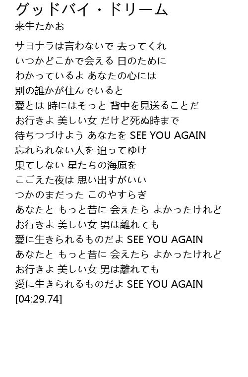 | [03:42.66] | 愛に生きられるものだよ SEE YOU AGAIN |