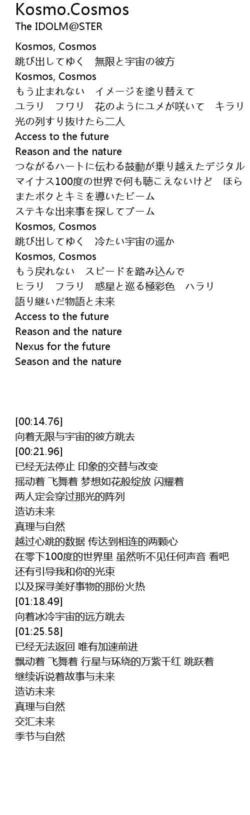 | [00:16.52] | 向着无限与宇宙的彼方跳去 |