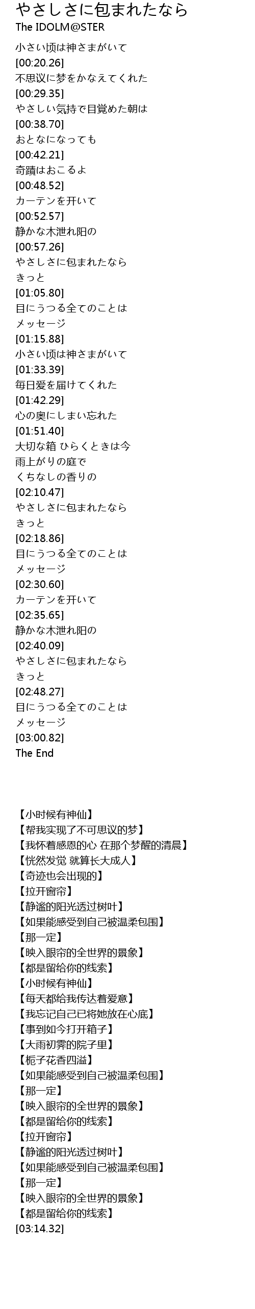 | [02:11.02] | 【如果能感受到自己被温柔包围】 |