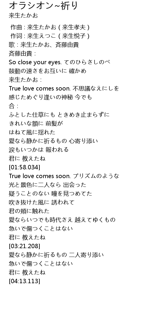 | [00:00.875] | 歌:来生たかお、斉藤由貴 |