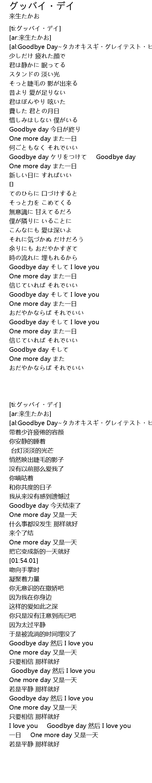 | [03:48.42] | Goodbye day そして I love you |