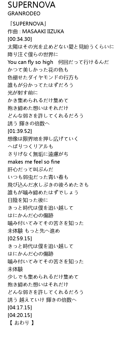 | [00:50.39] | You can fly so high 何回だって行けるんだ |