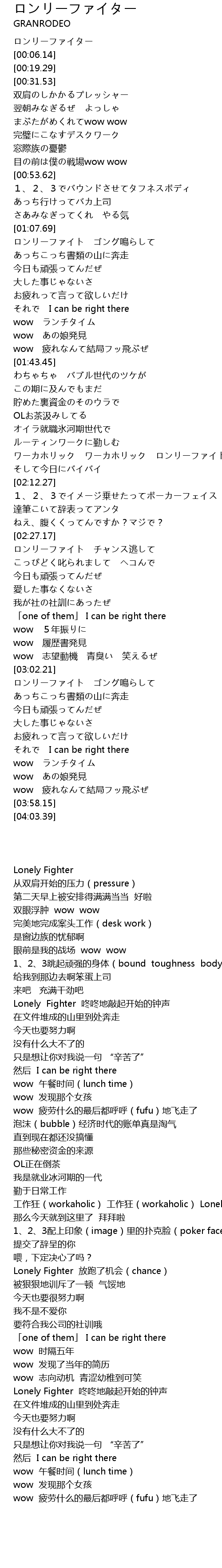 | [02:07.47] | ワーカホリック ワーカホリック ロンリーファイト |