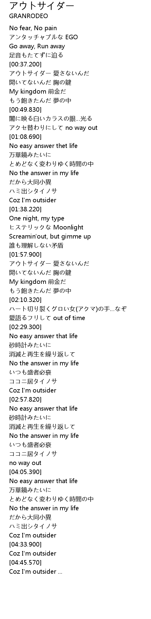 | [00:37.660] | アウトサイダー 愛さないんだ |