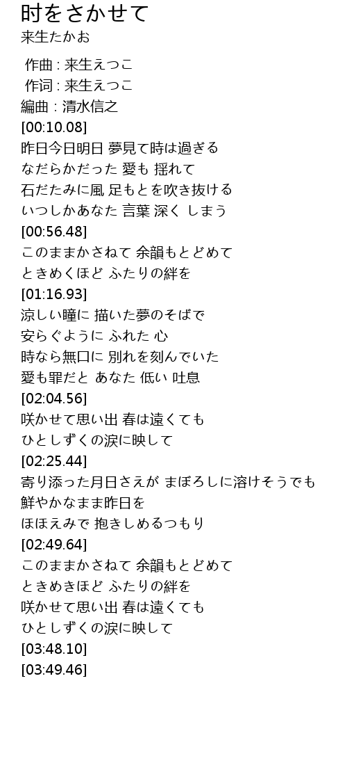| [03:28.13] | 咲かせて思い出 春は遠くても |