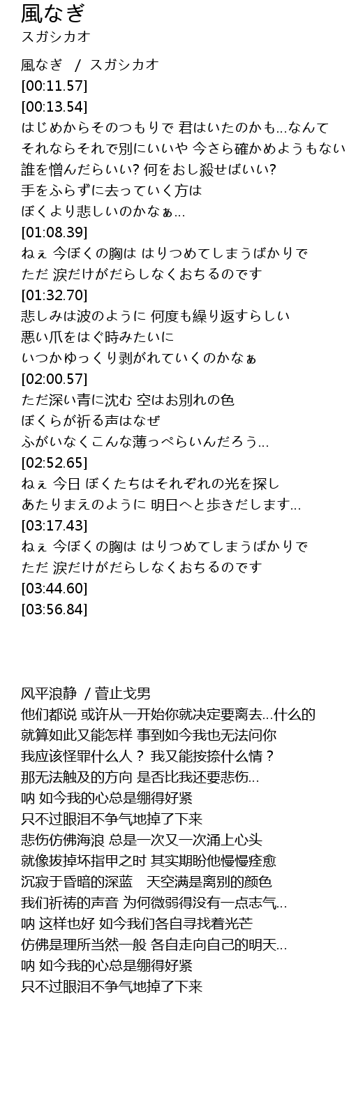 | [00:00.00] | 风平浪静 /菅止戈男 |
