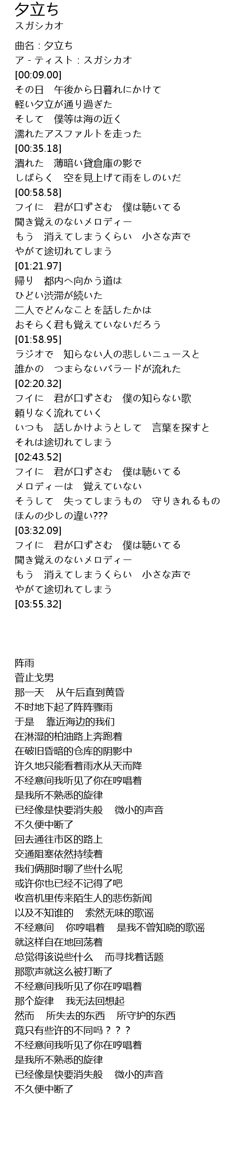 | [00:19.13] | 軽い夕立が通り過ぎた |