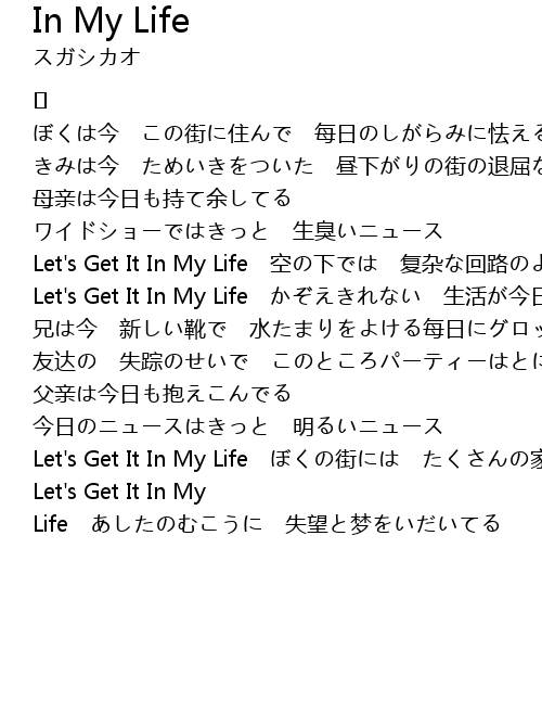 | Let's Get It In My Life あしたのむこうに 失望と梦をいだいてる |