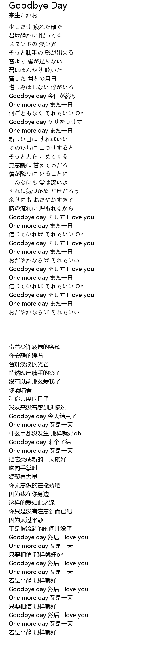 | [03:09.500] | Goodbye day そして I love you |