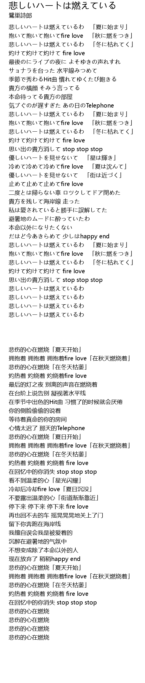 | [00:24.05] | 灼けて灼けて灼けて fire love |