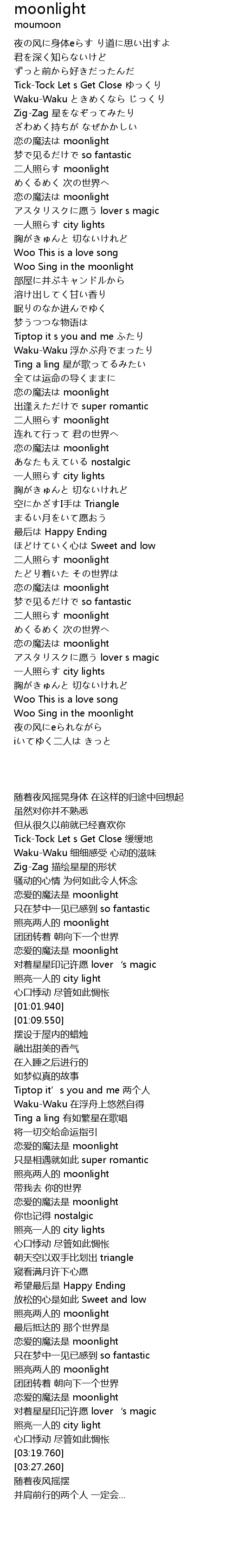 | [03:04.650] | 恋の魔法は moonlight |