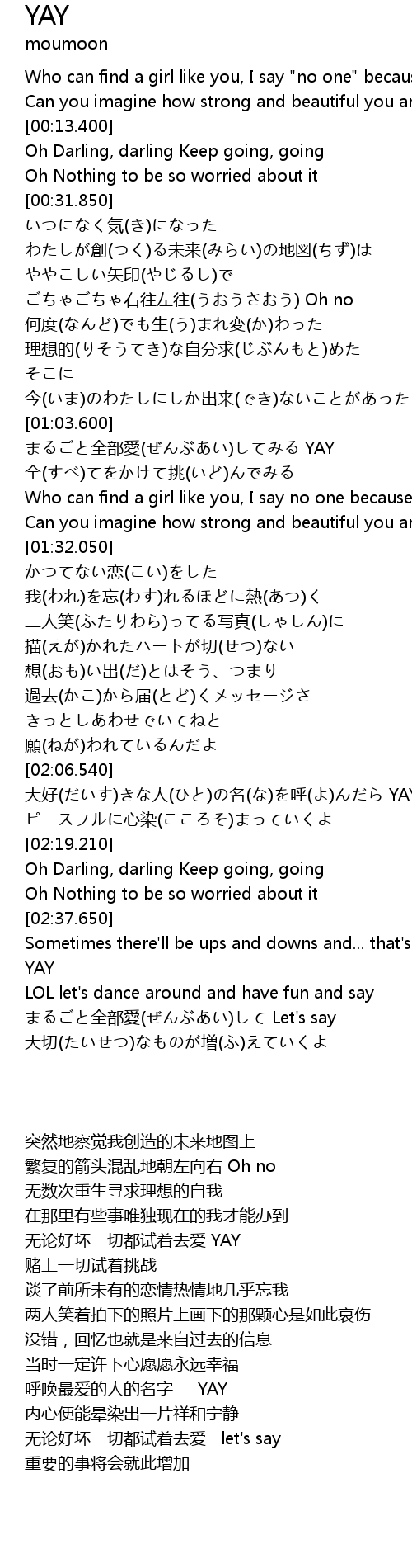 | [00:01.010] | Who can find a girl like you, I say "no one" because...YAY |