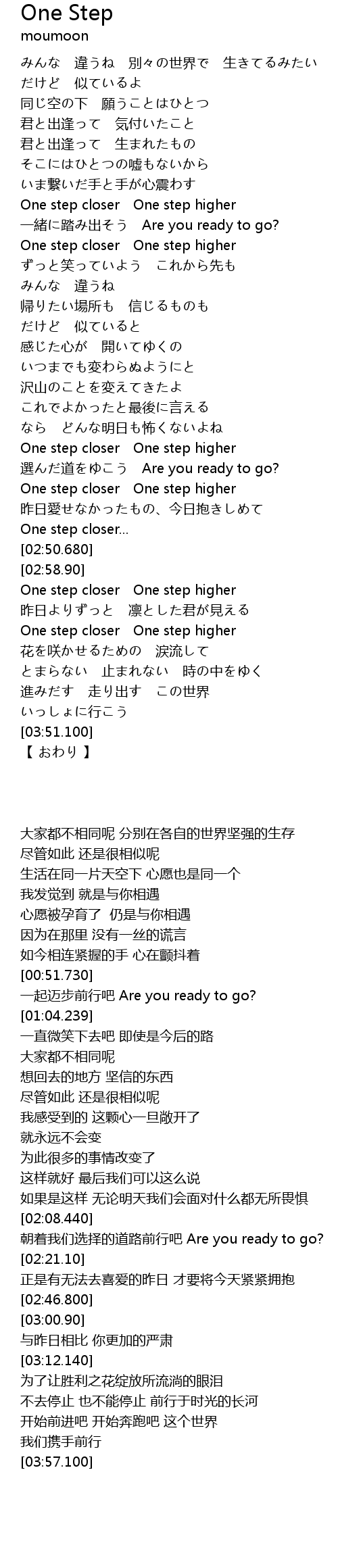 | [00:57.970] | 一緒に踏み出そう Are you ready to go? |