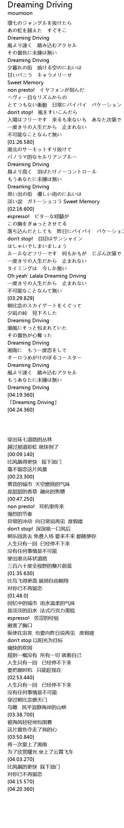 | [02:53.440] | Oh yeah' Lalala Dreaming Driving |