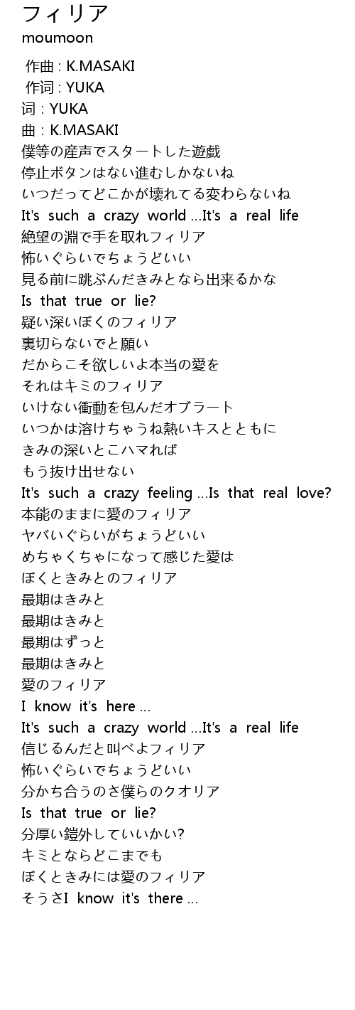 | [01:15.98] | 疑い深いぼくのフィリア |