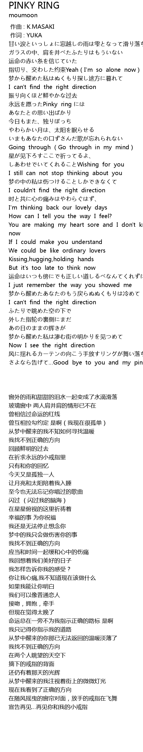 | [01:17.53] | yǒng yuǎn yuàn Pinky ring |