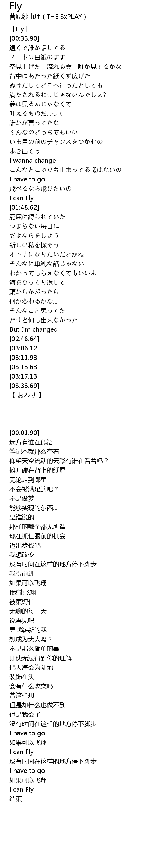 | [00:01.90] | 「Fly」 |