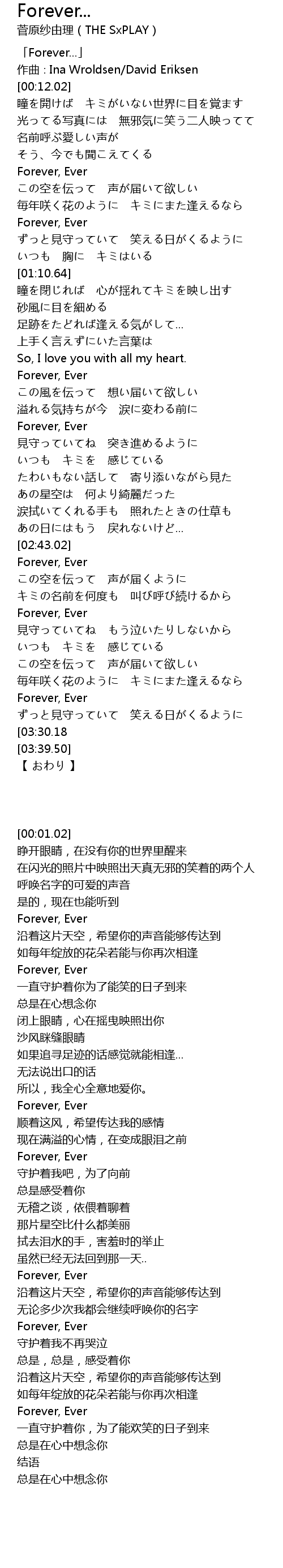 | [00:01.02] | 「Forever...」 |