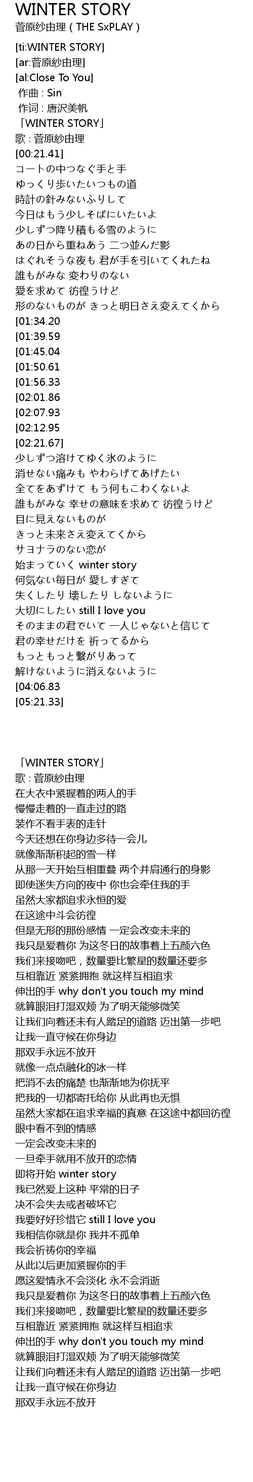 | [00:01.41] | 「WINTER STORY」 |