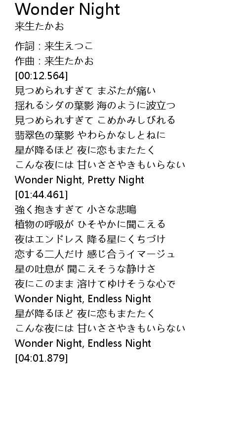 | [03:54.716] | Wonder Night, Endless Night |