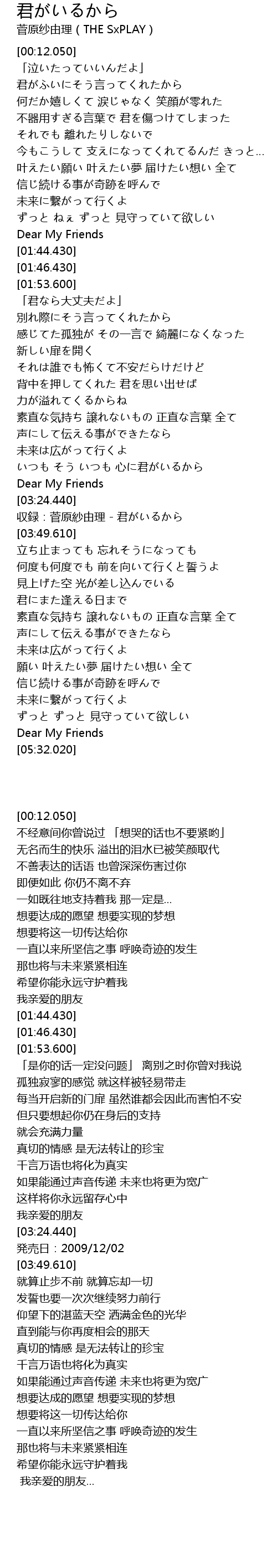 | [03:26.440] | 収録:菅原紗由理 - 君がいるから |