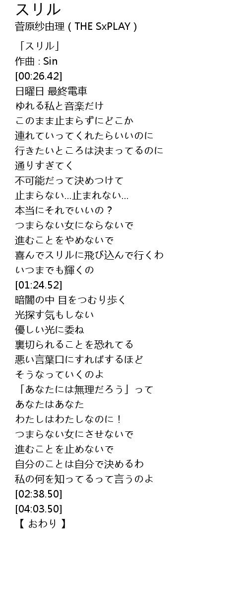 | [00:01.42] | 「スリル」 |