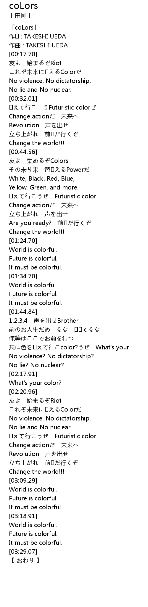 | [00:26.70] | これぞ未来に�えるColorだ |