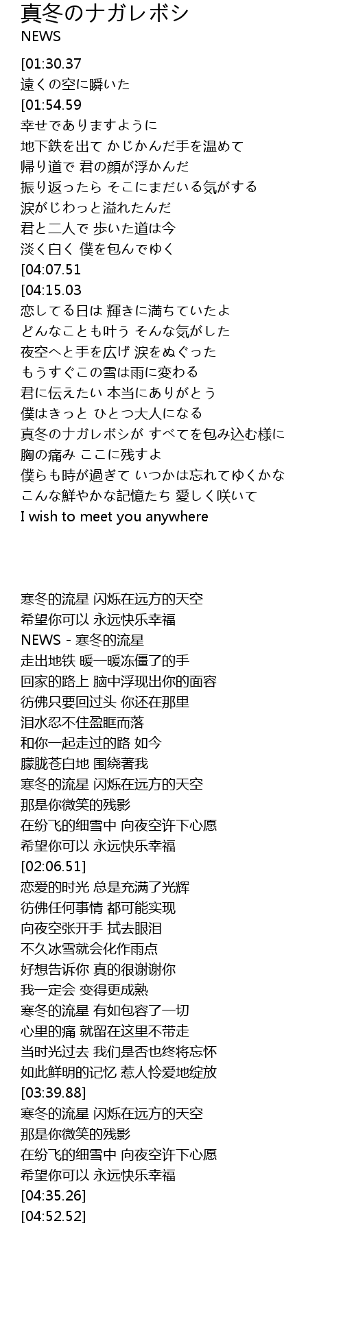| [00:25.29] | NEWS - 寒冬的流星 |