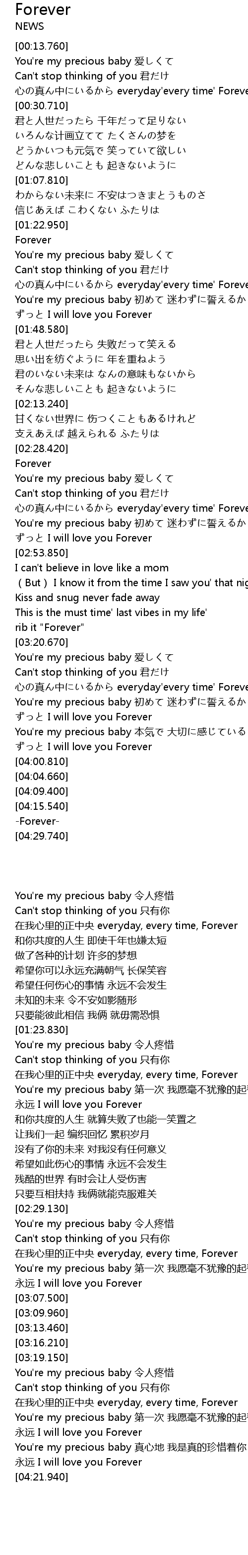 | [03:35.330] | You're my precious baby 第一次 我愿毫不犹豫的起誓 |
