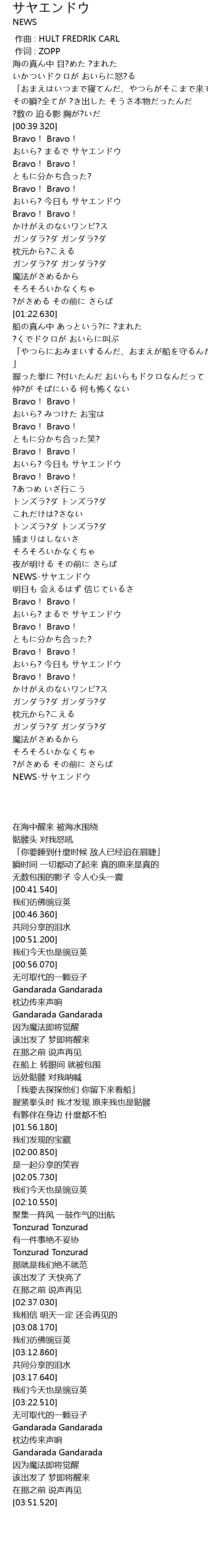 | [03:32.330] | ガンダラ?ダ ガンダラ?ダ |