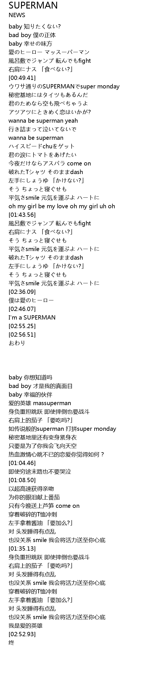 | [00:49.94] | ウワサ通りのSUPERMANでsuper monday |