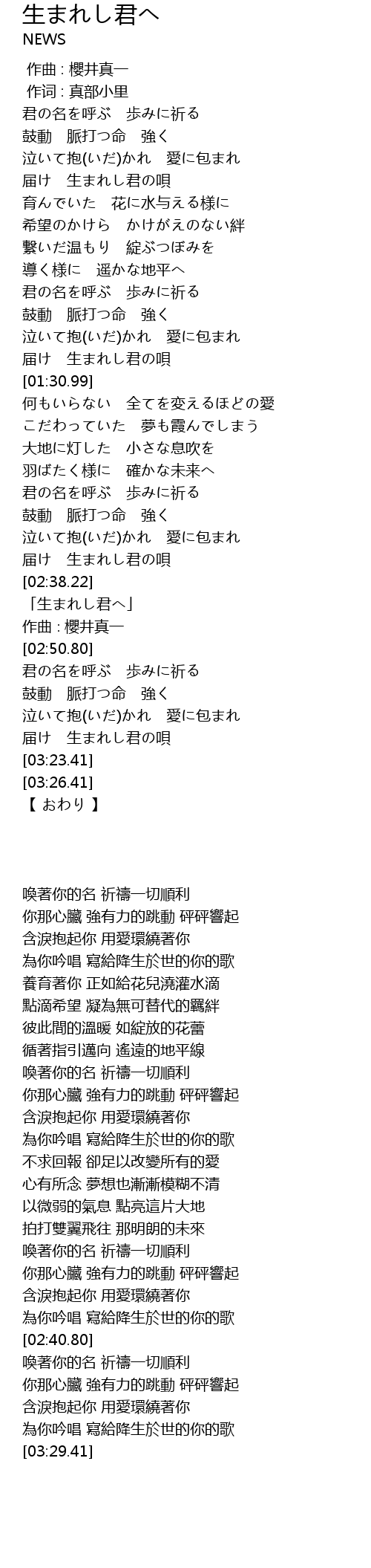 | [02:40.80] | 「生まれし君へ」 |