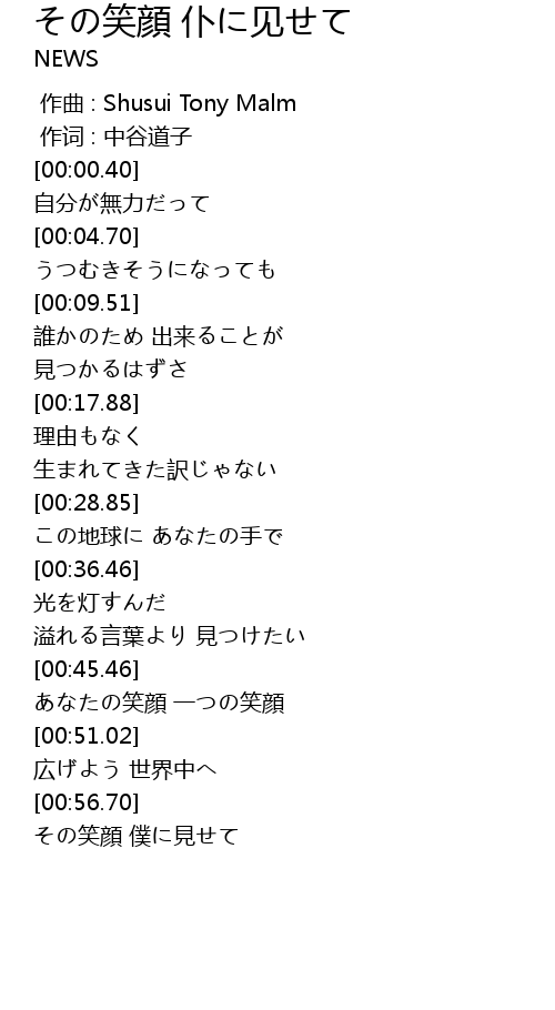 | [01:01.34] | その笑顔 僕に見せて |