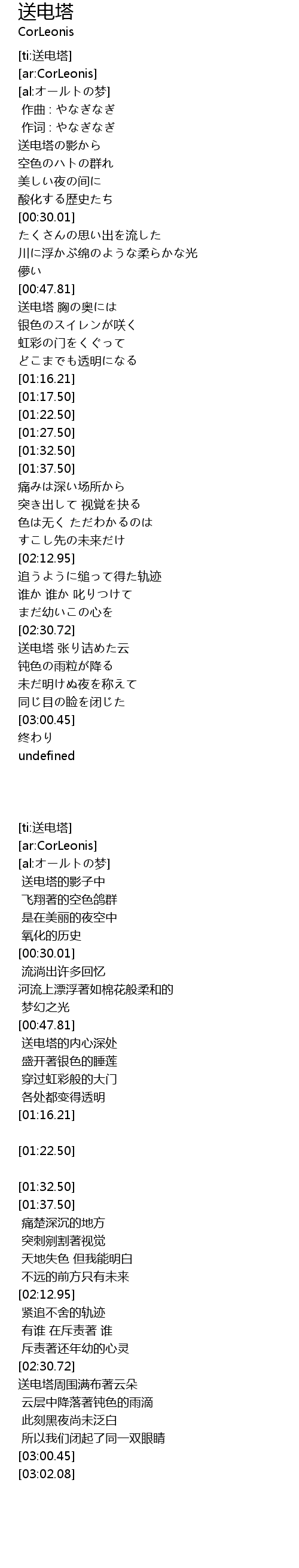 | [02:31.02] | 送电塔 张り诘めた云 |