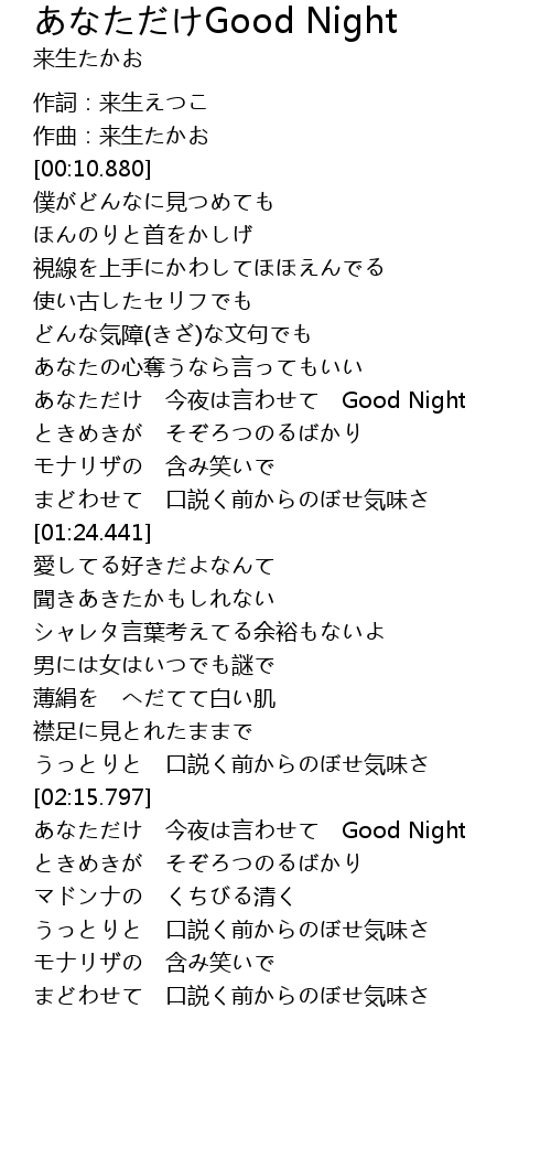 あなただけ 今夜は言わせて Good Night |