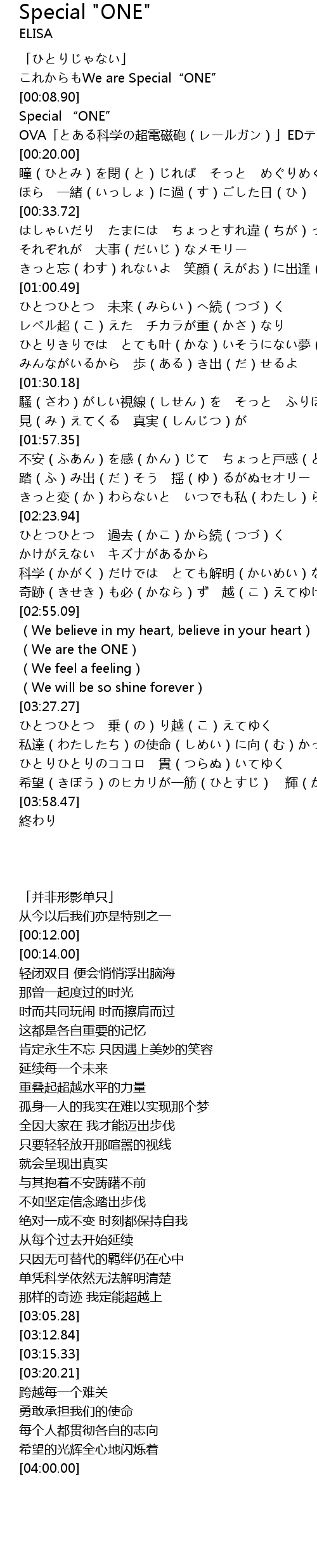 | [00:04.06] | 从今以后我们亦是特别之一 |