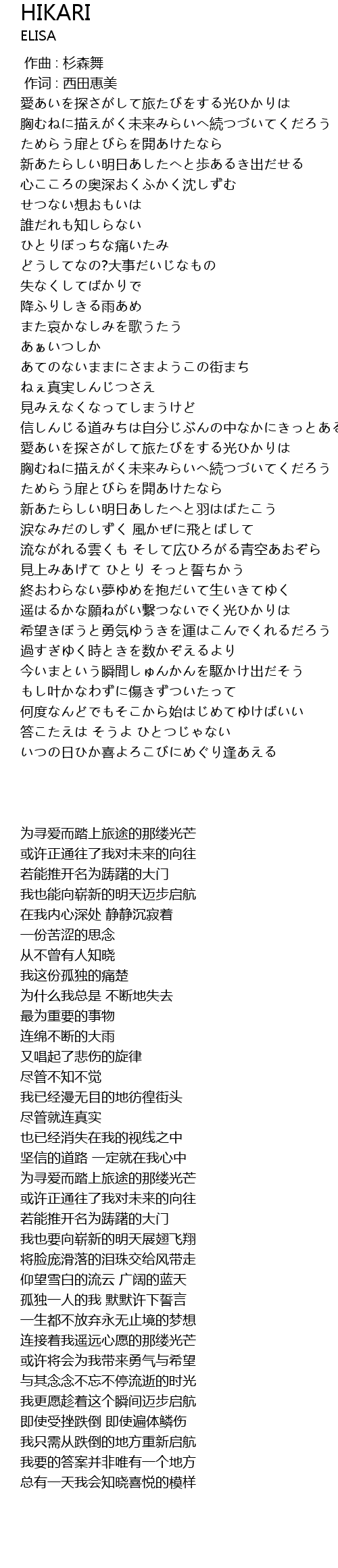 | [00:01.790] | 为寻爱而踏上旅途的那缕光芒 |
