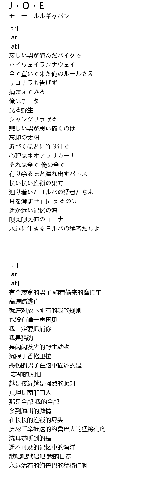 | [02:26.73] | 永远活着的约鲁巴的猛将们啊 |