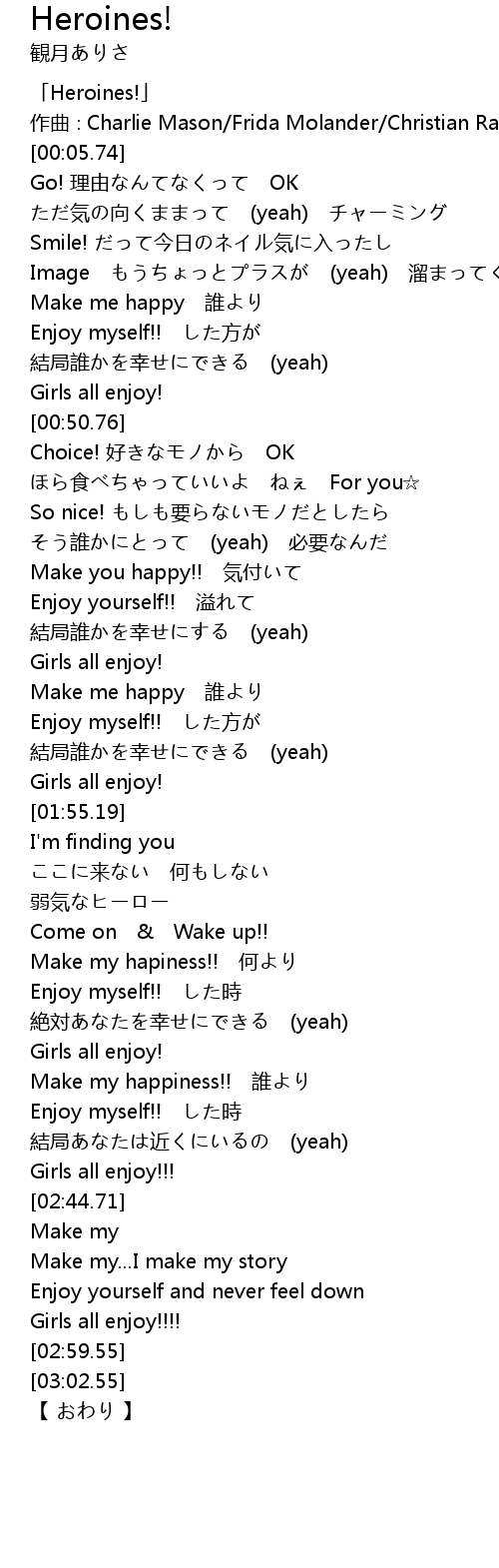 | [00:01.74] | 「Heroines!」 |