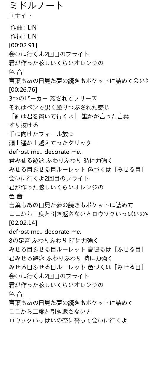 | [01:35.68] | 会いに行くよ2回目のフライト |