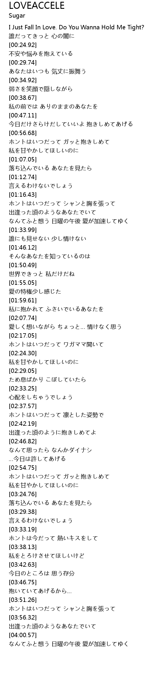 | [04:01.51] | なんてふと想う 日曜の午後 愛が加速してゆく |