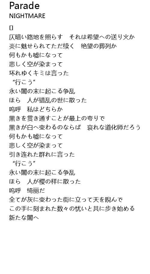 | 炎に魅せられてただ续く 绝望の葬列か | |