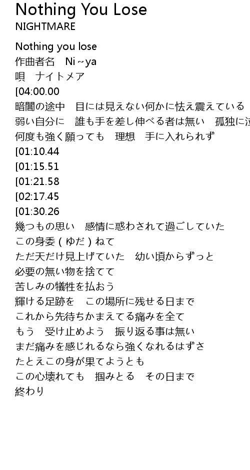 | [00:03.18] | Nothing you lose |