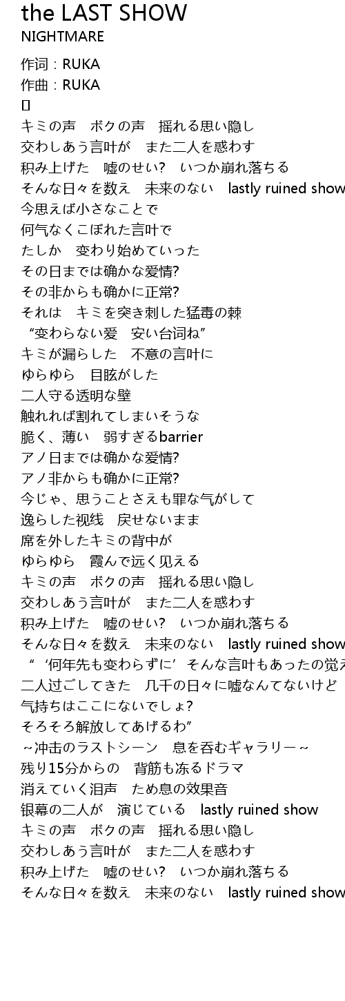 | そんな日々を数え 未来のない lastly ruined show time |