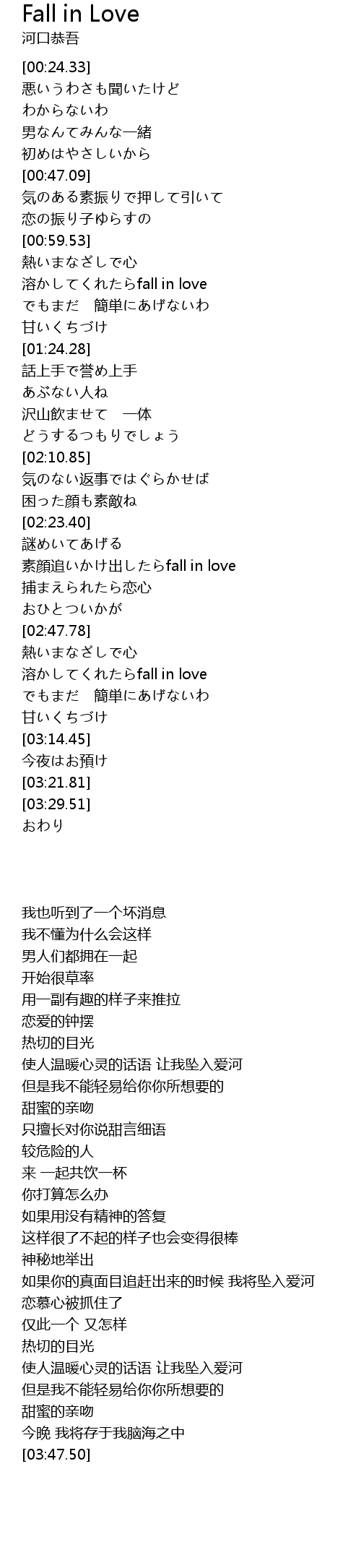 | [02:58.56] | 使人温暖心灵的话语 让我坠入爱河 |